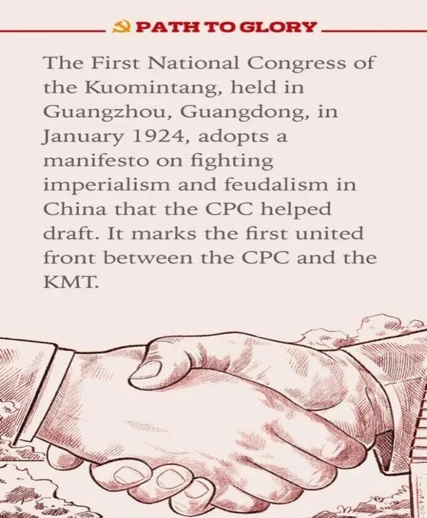 百年栉风沐雨、淬火成钢,中国共产党更加坚强有力、更加充满活力,党的政治领导力、思想引领力、群众组织力、社会号召力显著增强,正领导中国人民在中国特色社会主义道路上不可逆转地走向中华民族伟大复兴,国共合作加快了中国革命前进的步伐。