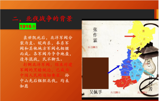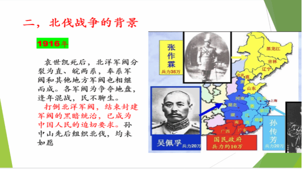 网络空间安全二班的王庆森同学重点介绍了1916年袁世凯死后,北洋军阀分裂为直、皖两系,奉系军阀和其他地方军阀也相继而成。各军阀为争夺地盘,逢年混战,民不聊生。打倒北洋军阀,结束封建军阀的黑暗统治,已成为中国人民的迫切要求。孙中山先后组织北伐,均未如愿。1926年1月,国民党第二次全国代表大会提出打倒帝国主义、打倒军阀,统一全国的纲领。于6月5日,国民党中央执行委员会临时全体会议通过迅速出师北伐案。