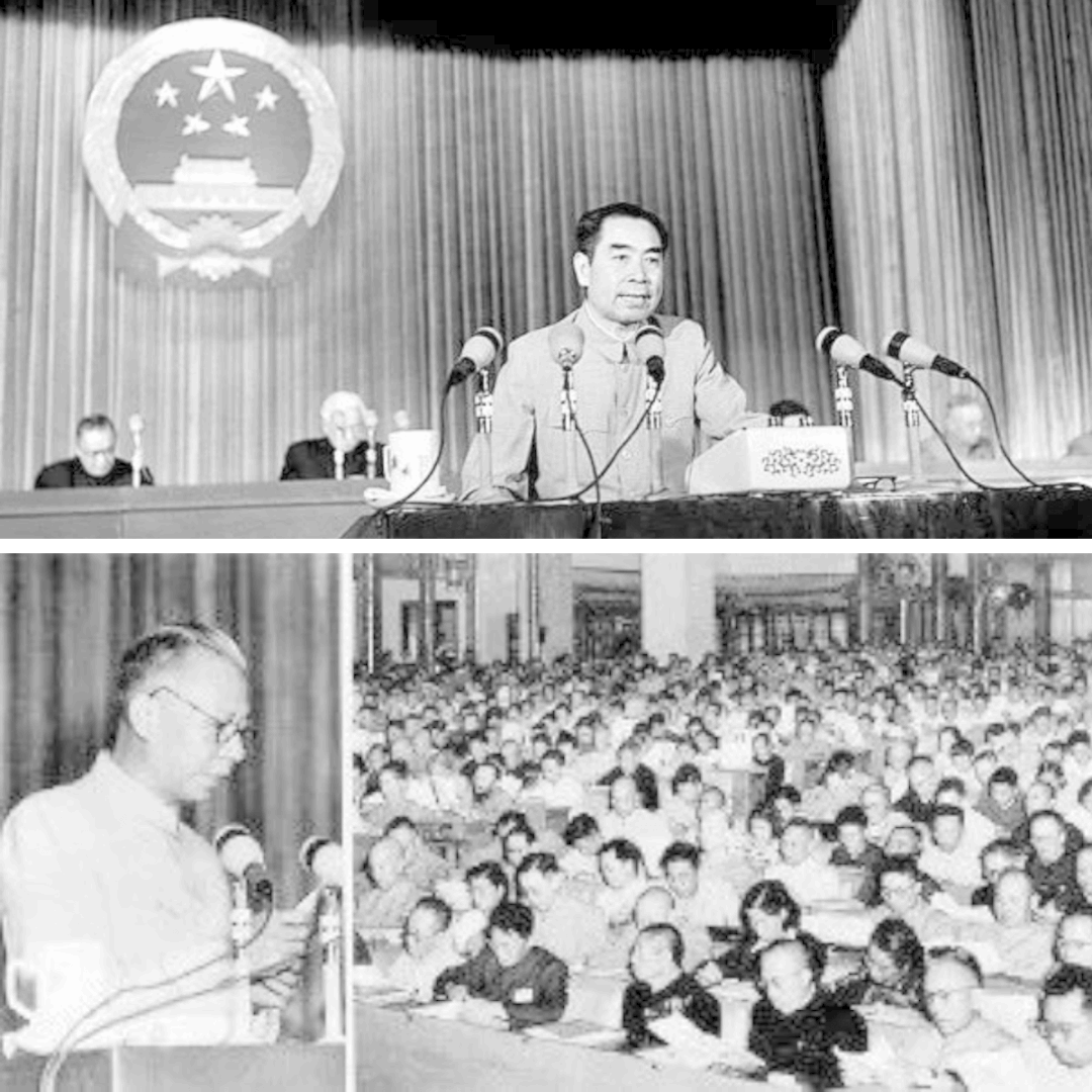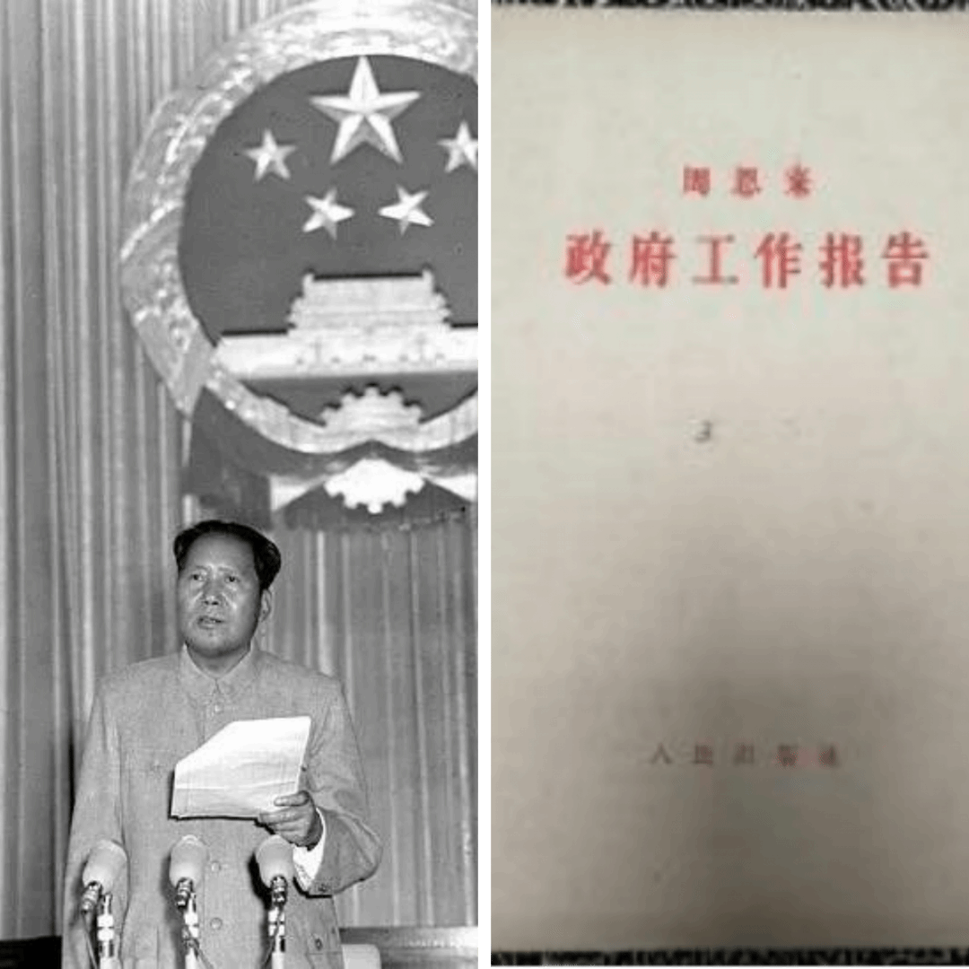 中央人民政府政务院总理周恩来《政府工作报告》。《政府工作报告》提出“我国伟大的人民革命的根本目的,是在于从帝国主义、封建主义和官僚资本主义的压迫下面,最后也从资本主义的束缚和小生产的限制下面,解放我国的生产力,使我国国民经济能够沿着社会主义的道路而得到有计划的迅速的发展,以便提高人民的物质生活和文化生活的水平,并且巩固我们国家的独立和安全。”