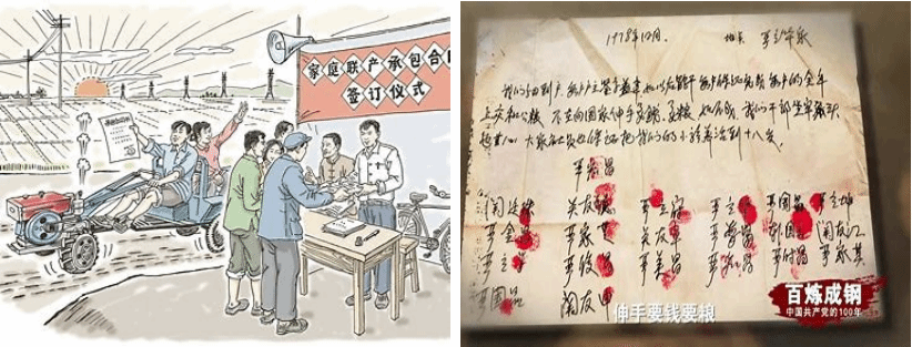 家庭联产承包责任制是农民以家庭为单位,向集体经济组织(主要是村、组)承包土地等生产资料和生产任务的农业生产责任制形式,它是中国现阶段农村的一项基本经济制度。在农业生产中农户作为一个相对独立的经济实体承包经营集体的土地和其他大型生产资料(一般做法是将土地等按人口或人劳比例分到农户经营),按照合同规定自主地进行生产和经营。其经营收入除按合同规定上缴一小部分给集体及缴纳国家税金外,全部归于农户。集体作为发包方除进行必要的协调管理和经营某些工副业外,主要是为农户提供生产服务。1982年,中央第一个关于农村工作的“一号文件”正式出台,明确包产到户、包干到户都是社会主义集体经济的生产责任制。从此,18枚红手印催生的家庭联产承包责任制,最终上升为我国农村基本经营制度。