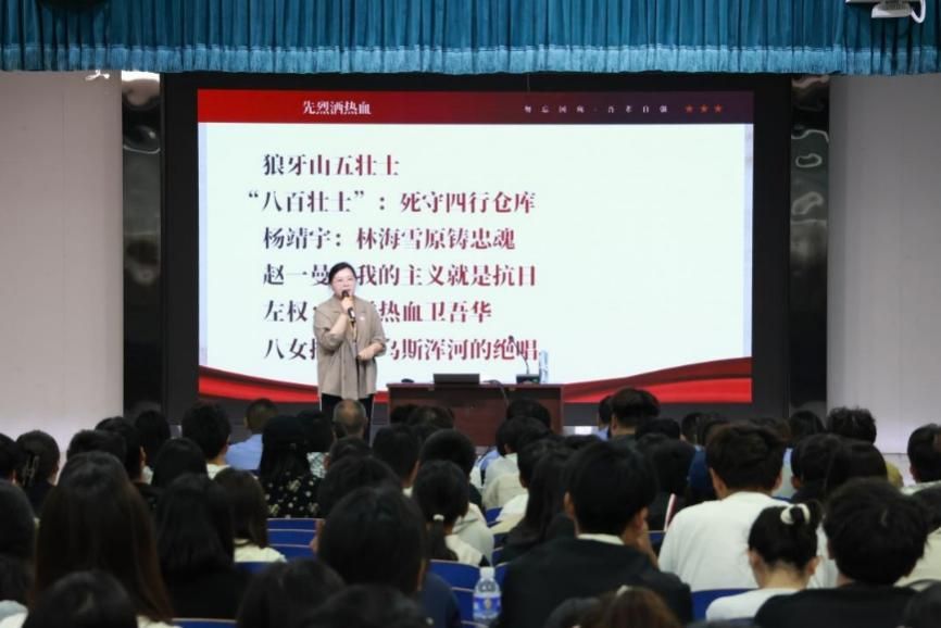 马克思主义学院教师范凯轩以时代发展为主线,为学生从九一八事变、抗战精神、九三阅兵解读了中华民族迎来了从站起来、富起来到强起来的伟大飞跃。同时以AI对话的形式让学生明确,回顾历史是以史为鉴,察往知来;是以史为师,承继先烈;是以史明志,开创未来。