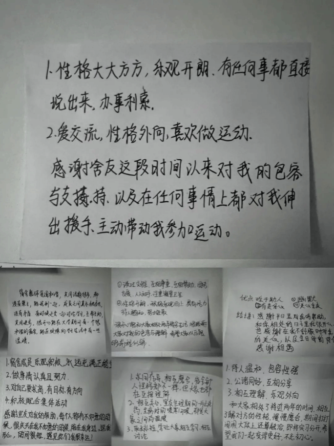 第一,不会沟通。很多学生说话心直口快,只在意自我表达,不顾及他人感受,说话带情绪,甚至辱骂他人。在民主生活会上,大家针对自身问题进行批评与自我批评。学生们提出以下改进措施:说话前经过大脑思考,不仅仅重在表达自己感受,更要学会倾听给予有效反馈;在与舍友沟通时,站在对方角度体味对方的情绪情感,说话不带情绪,注意语言的技巧应用,学会克制自己情感。