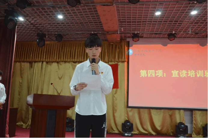 软件学院团总支青马委员岳已乔宣读本次青马培训班通报。