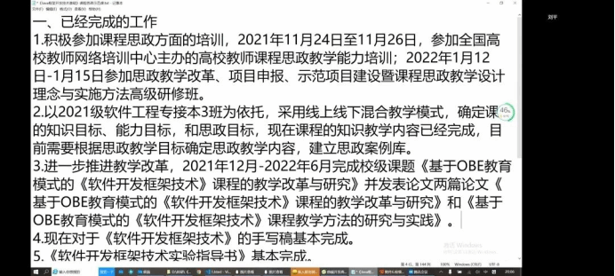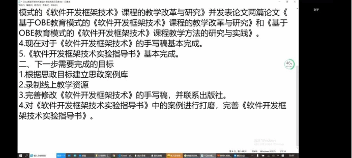 本次参会成员中,进行课程建设进程汇报的教师为:赵丽平、申晓旭、刘平、单慧枝、 尹益燕、冯丽佳。他们分别针对beat365官网《软件质量保证与测试》、《软件开发框架技术》、《软件测试技术应用》等一流课程和优质课程的建设进程、费用使用等内容进行了介绍。