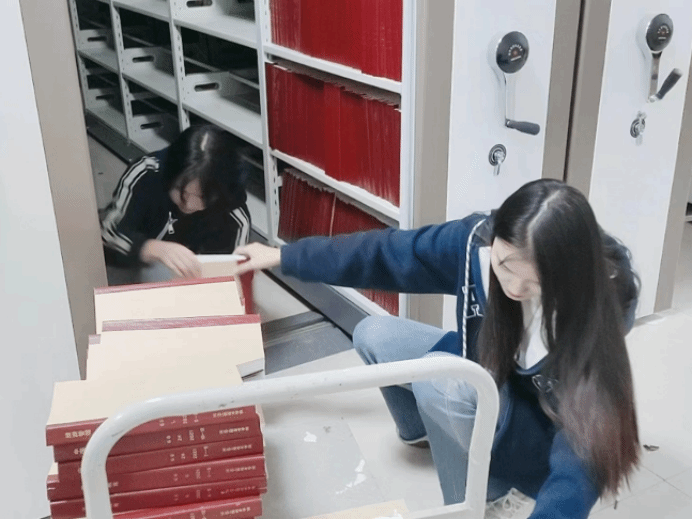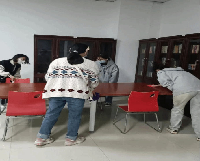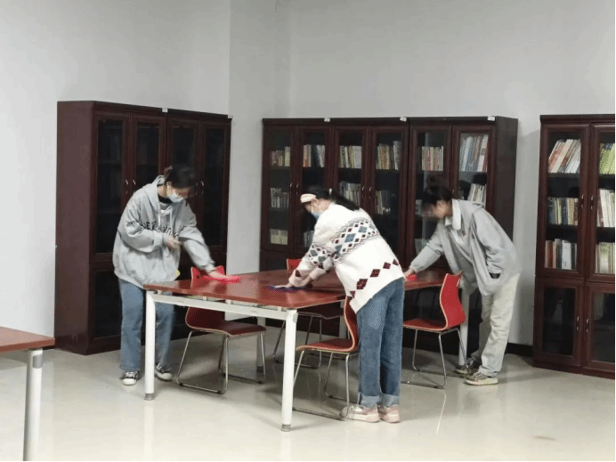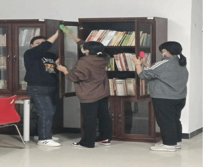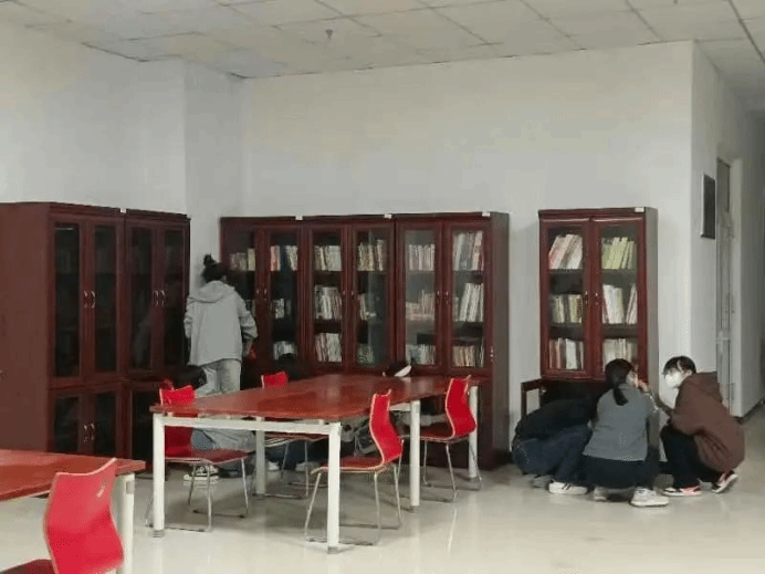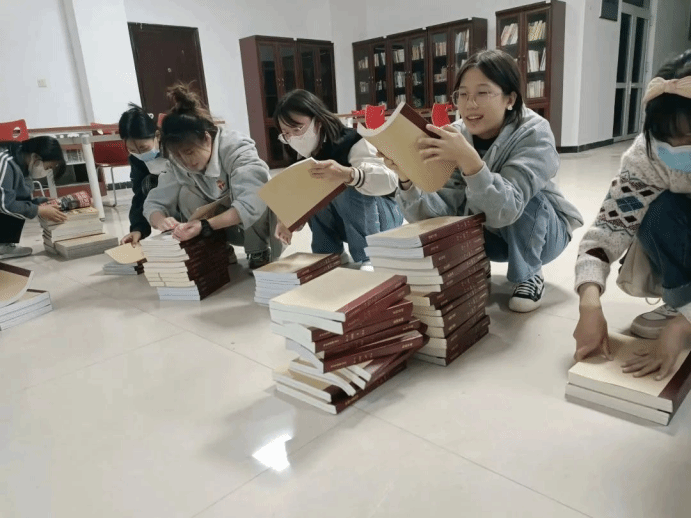 书香浓情,你我同行。活动开始前,图书馆老师耐心地跟志愿者讲解图书的摆放原则与图书的摆放顺序。随后,老师根据参加活动人数以及需要打扫整理的书库,对在场人员进行了分工,在明确相关注意事项后,志愿者们迅速进入工作状态。志愿者们各司其职,女生负责桌椅、柜子的擦拭及书籍的整理;男生负责拆开包裹中的书籍、将书籍按号分类并运送、安排图书摆放工作,在志愿者们的共同努力下,一箱箱打包好的图书都放在了预先准备好的位置。整个志愿服务过程中,志愿者们发扬不怕苦、不怕累的精神,彼此之间相互配合,默契十足。