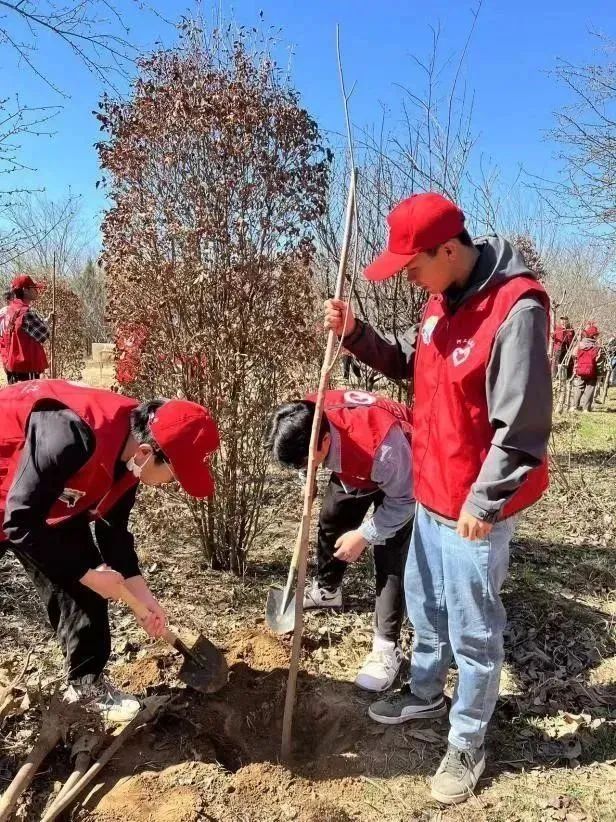 上午10时许,志愿者们来到植树点分散种植树苗。大家三五人一组,挥锹铲土、扶树培土、取水浇灌,配合默契、干劲十足,一片热火朝天的景象。同学们对此次志愿服务活动都充满了热情,希望能在春天留下自己的足迹。