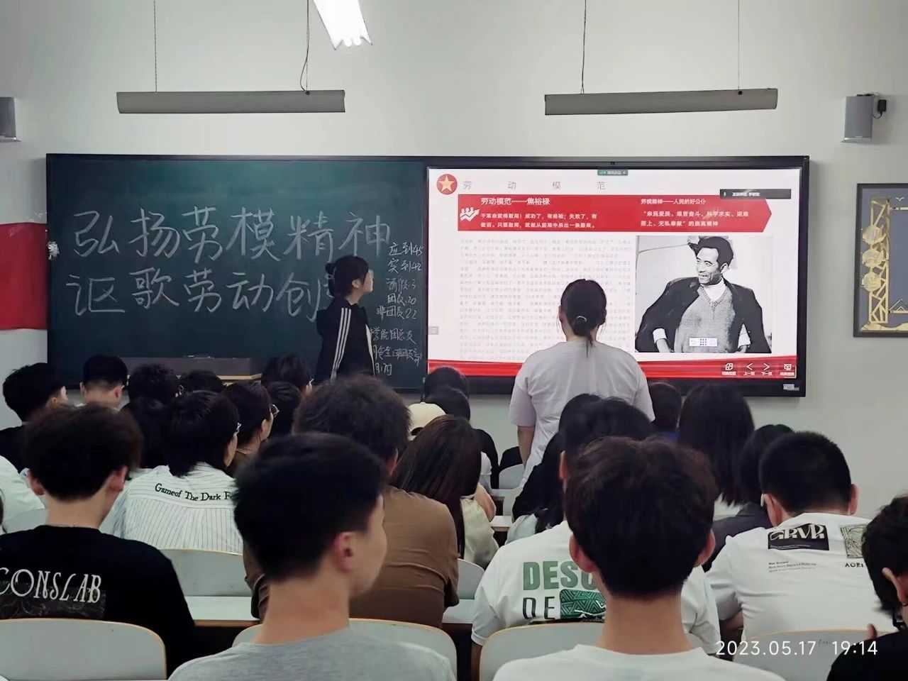 此次班会由各班负责人以PPT形式来为大家讲述劳动概述、劳动模范、劳动的意义、劳动从我做起等内容。以此促进同学们进一步加深学生对劳动的正确认识与理解,继承与弘扬劳动精神,一起奏响劳动主旋律、唱响教育好声音。