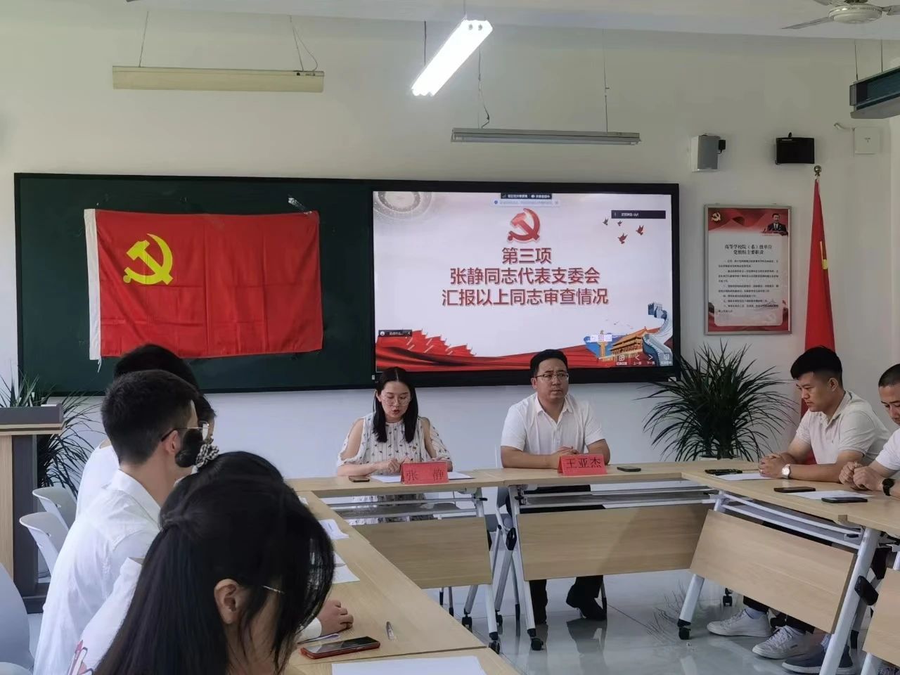 软件学院学生党支部召开新发展对象接收为预备党员大会,会议采用线上与线下相结合的方式进行。beat365官网党总支书记王亚杰、学生党支部宣传委员张静、支部全体正式党员及12名党员发展对象参加了会议。会议由学生党支部宣传委员张静同志主持。