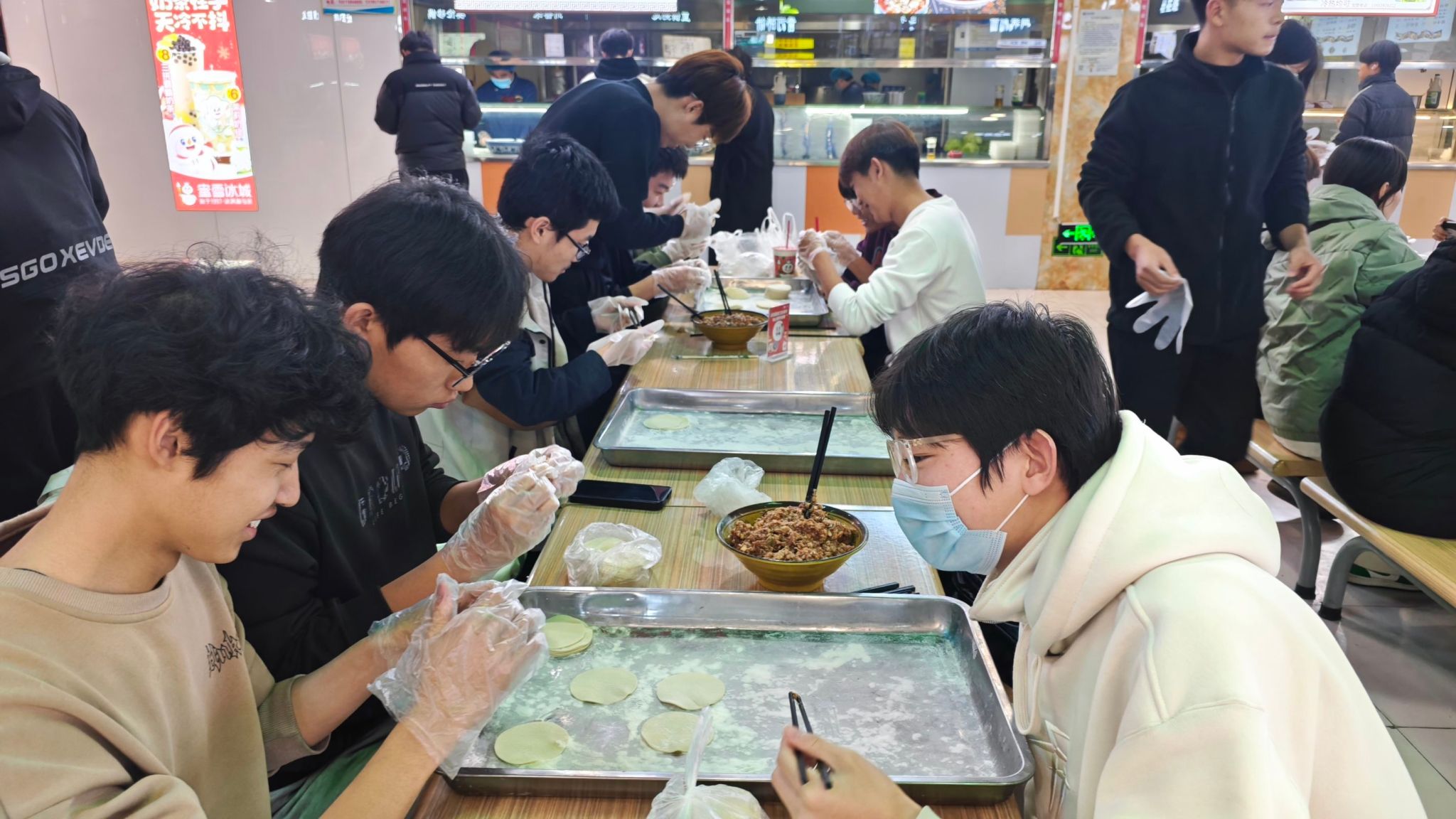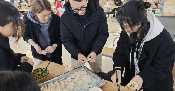 冬至大如年,人间小团圆。在我国北方,每年冬至都有吃饺子的习俗。民间一直流传着“冬至饺子夏至面”,“冬至不端饺子碗,冻掉耳朵没人管”的俗语。同学们纷纷积极参与包饺子活动,有的同学认真向其他同学学习包饺子的技巧,有的同学们现场搜索教程来学习包饺子,老师们也亲自来教同学如何快速的包饺子。尽管大家的手法略显生疏,但都饱含着热情与专注。学管副院长樊风彩看着同学们包出的“劳动成果”,和同学们也讲起了自己关于学包饺子的故事,欢声笑语中让师生之间的距离更进一步。