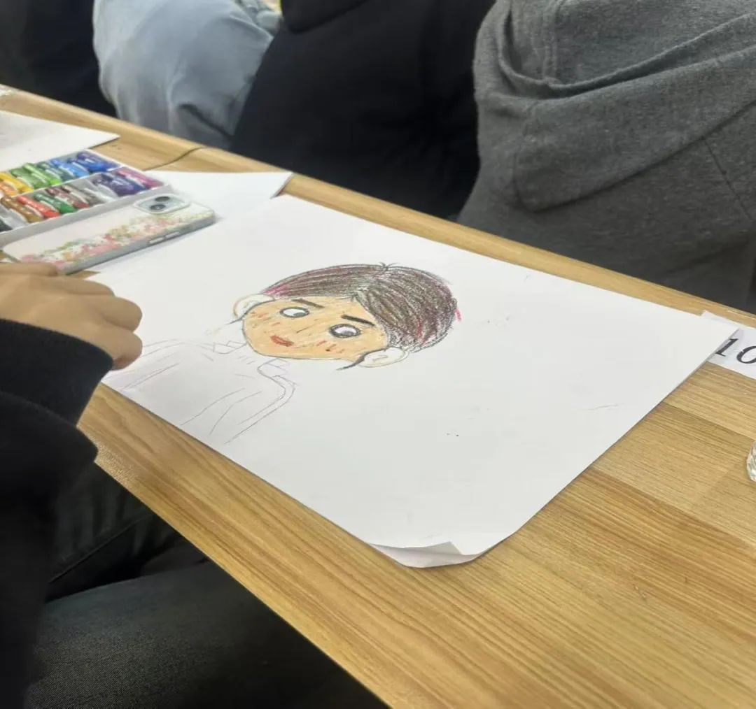 在活动过程中,教室里艺术气息浓厚,参与者们专注地绘画,只能听到铅笔划过纸张的沙沙声和偶尔的低声交流。随着时间推移,一幅幅自画像逐渐出现,展示了参与者们不同的风采。