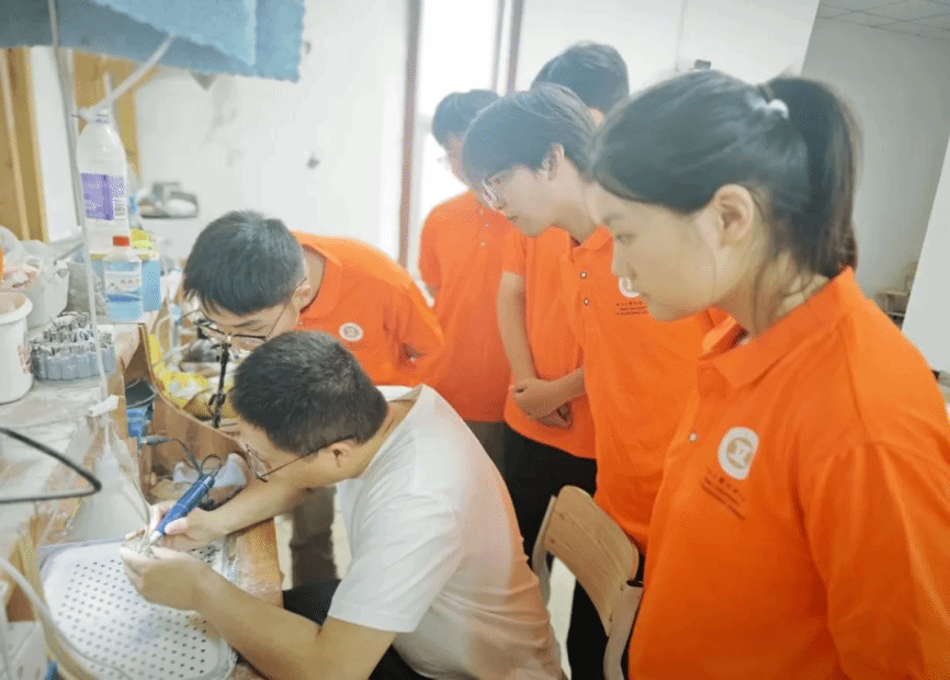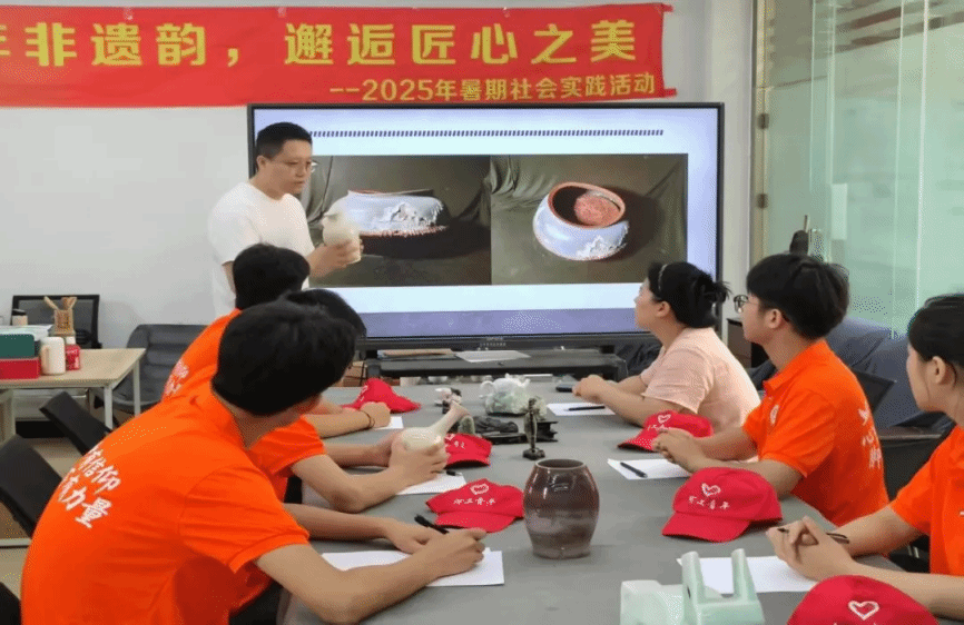 河北美术学院雕塑与公共艺术学院杨光昭老师的课堂,为队员们打开了非遗世界的大门。这位深耕传统工艺数十年的老师,以玉雕与陶瓷技艺为脉络,既讲解玉石切割的角度拿捏、釉料配比的火候掌控等实操细节,更阐释“巧色”技法中天人合一的哲学、陶瓷开片里残缺即圆满的美学。在他的解读中,非遗不再是博物馆里的标本,而是活着的文化基因,承载着古人对世界的理解。