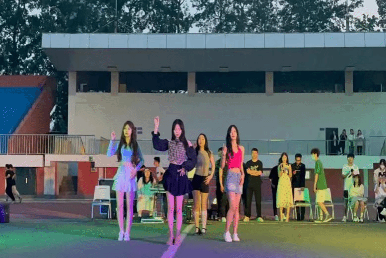 远处有一群人在唱歌,还有一群人在跳舞,