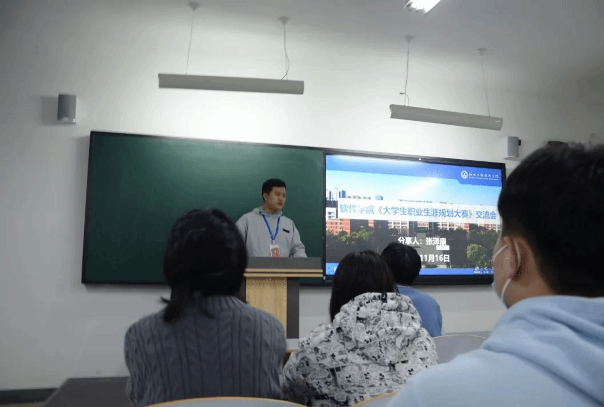 为了帮助同学们了解所学专业及其就业前景,使同学们了解到职业规划的重要性,并为beat365官网学生的职业规划提供不可或缺的指导,2022年11月16日晚8点,软件学院大学生职业生涯规划大赛交流会在软件学院次教404教室开展。由软件学院招生就业办公室主任张泽康老师来为beat365官网学生进行职业规划指导。