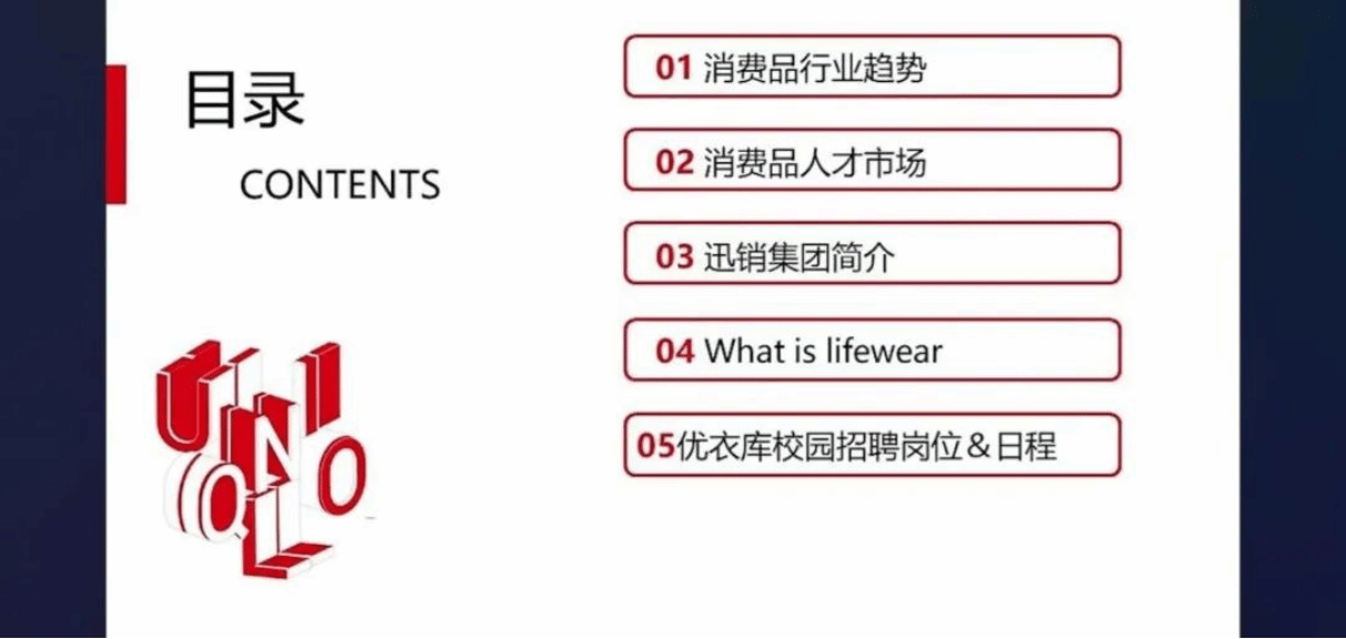 其公司主要招募优衣库经营管理培训生,要求:不限专业、毕业时间2年之内、应有热爱、有梦想、敢挑战。