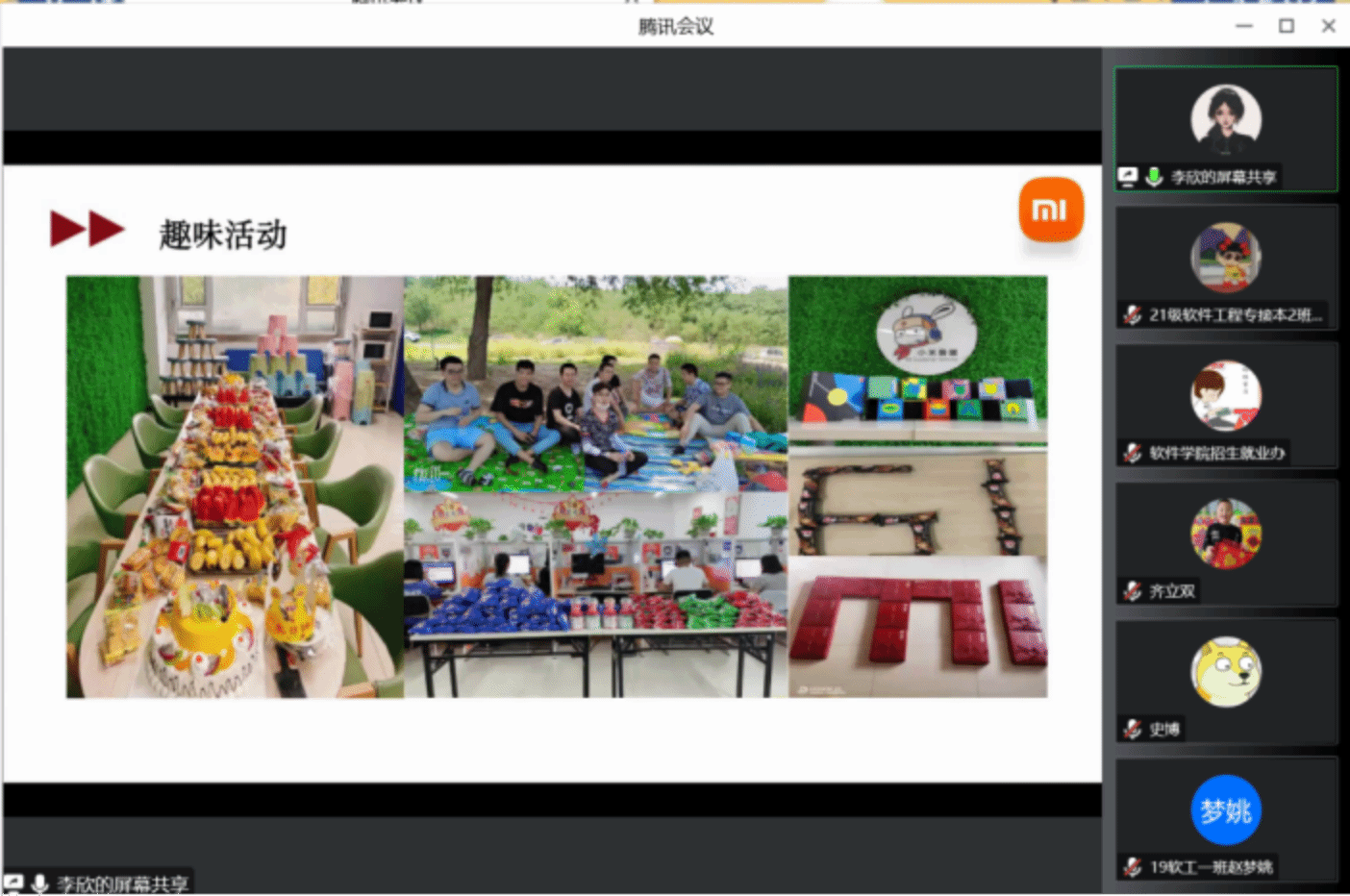 本次招聘宣讲主要招聘的实习岗位为小米客服中心项目咨询员。该岗位具体负责小米官网/小米商城购买热门产品:1.购买前的咨询,2.使用过程中出现问题故障排查,3.建立售后服务单等。未来岗位可以发展为讲师,公司设立有专门的讲师训练营,可以去北京总部进行认证,并授发小米专属证书。同时,也重点讲解了公司福利待遇以及团建活动。