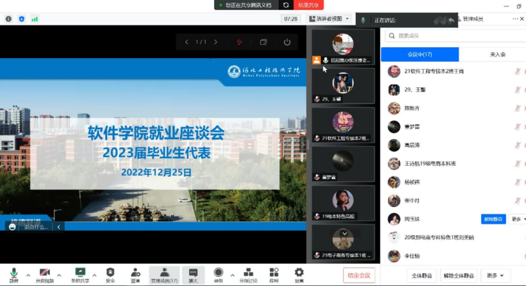 6.2022年12月28日19:20由学院组织的宣讲会在线上举行,本次宣讲的公司为合肥七宇科技有限公司和河北云鱼科技有限公司。