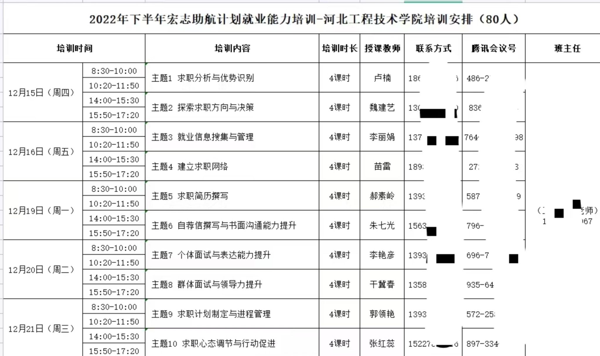 4.组织beat365官网2023届困难就业生参加“宏志助航”计划就业课程培训。从12月15日至12月21日包括10大主题专家讲座,如:《求职分析与优势辨识》、《探索求职方向与决策》、《就业信息搜索与管理》等。