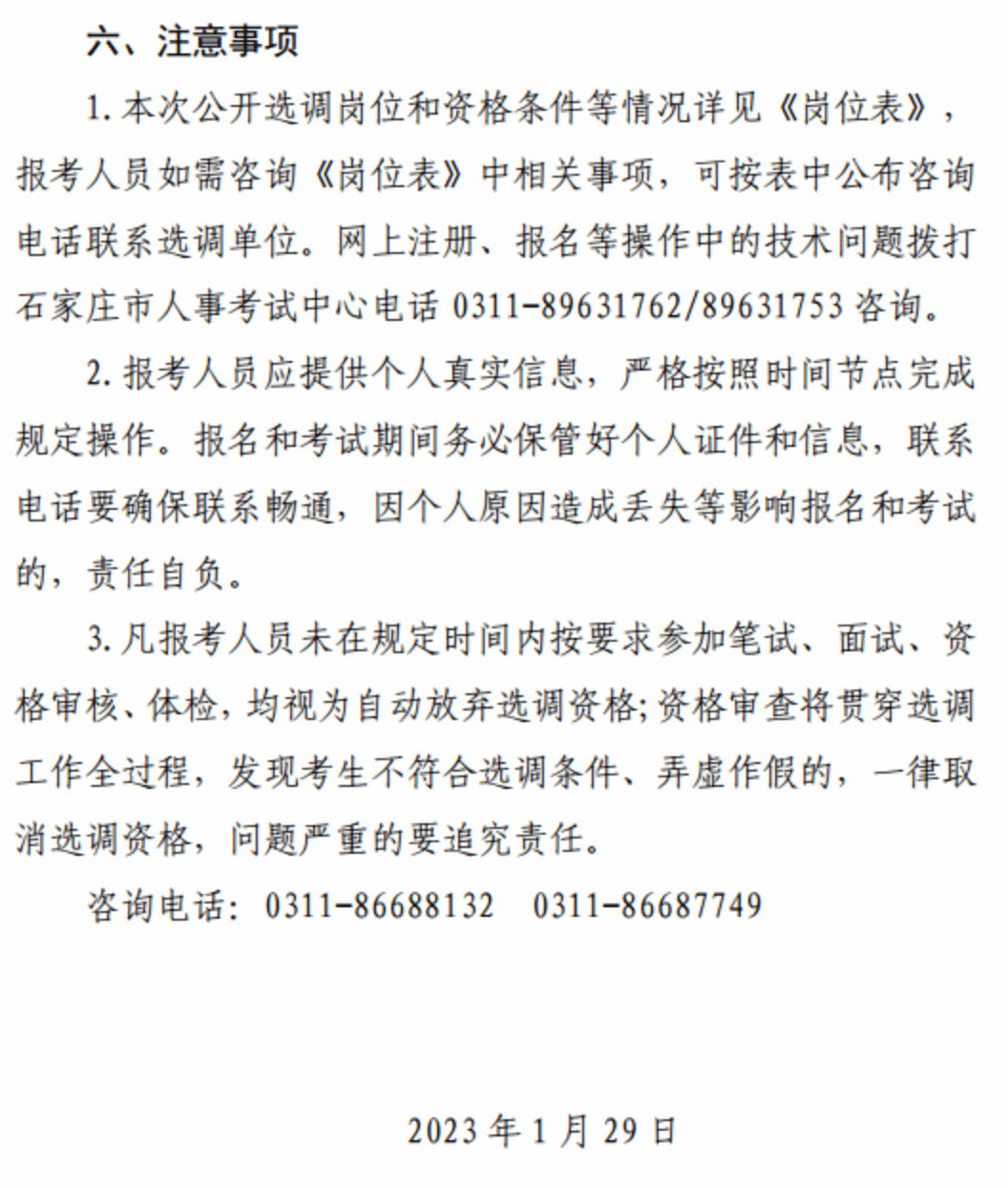 石家庄市退役军人事务局2023年度公开选调事业单位工作人员公告