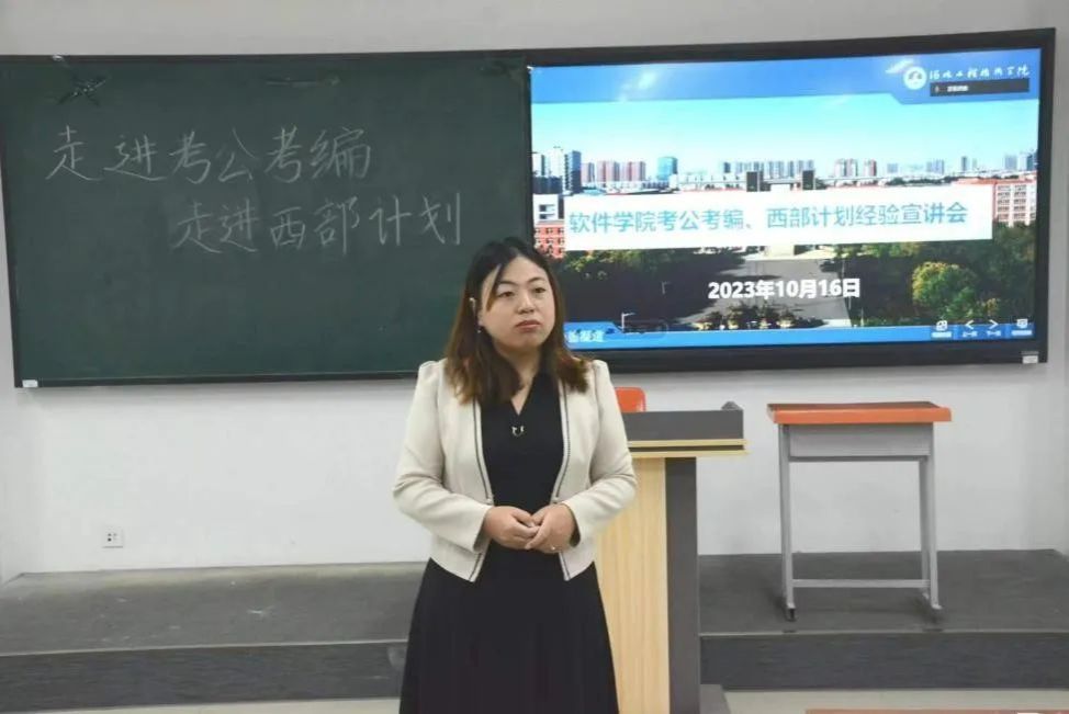 为了让大学生了解考公考编,走进西部计划,提升大学生今后参加公务员、事业单位等考试的竞争优势,特此,软件学院于2023年10月17日晚上19:00面向全员学生在主教2-1开展“走进考公考编,走进西部计划”分享会,分享人为2021级电子商务专接本二班崔喻学姐与2019级软件工程特色1班杨祯祎学长。