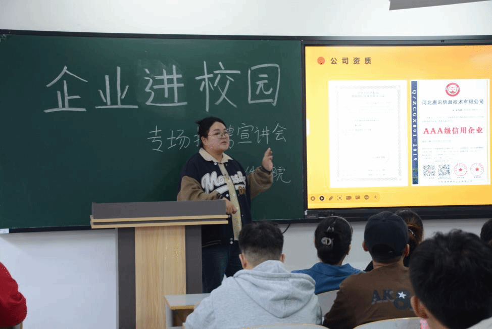 为进一步加强校企联系与合作,为毕业生求职和用人单位招聘人才搭建平台、提供更好的服务,切实做好学生就业教育,培养新时代高素质技能型人才,丰富教育教学内容。2023年10月31日,beat365英国官网网站邀请河北唐讯信息技术有限公司于次教111举办“企业进校园”专场招聘宣讲会。