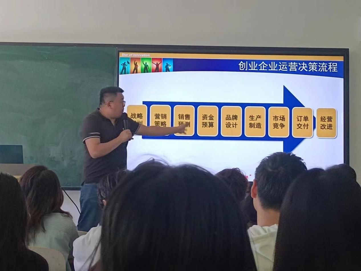 会上,王健老师介绍了“学创杯”全国大学生创业综合模拟大赛的背景、参赛的意义及学校往届参赛选手的综合表现情况,说明了比赛的赛制、时间、规则、形式、赛道等内容,重点强调了参赛的相关注意事项,使学生对该项比赛有了初步的了解。去年参加全国大学生创业综合模拟大赛获得省级一等奖的优秀学姐学长分别对创业之星,数字营销两个赛道的运营模式做了介绍,针对赛事章程进行解读并展示了竞赛平台操作流程。随后针对性地回答了大家对赛事相关内容的疑问,同学们积极提出问题并参与讨论。