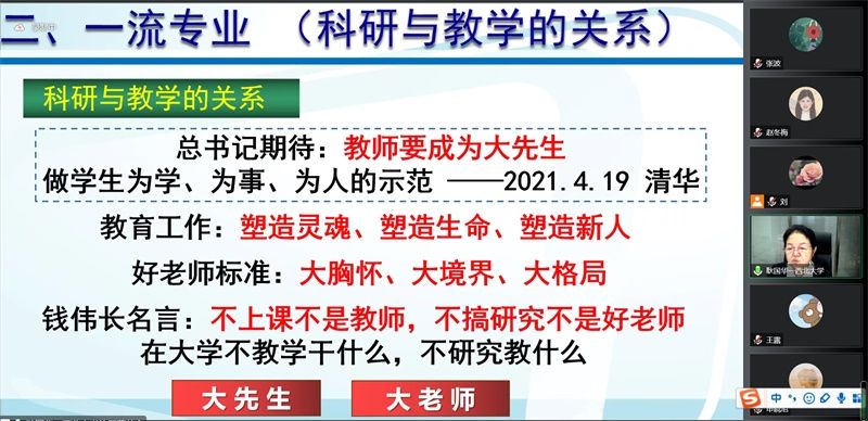 通过本次学术报告,老师们明确了进行一流专业和一流课程建设的必要性,并掌握了建设要领,可以在后期申报工作中加以运用。