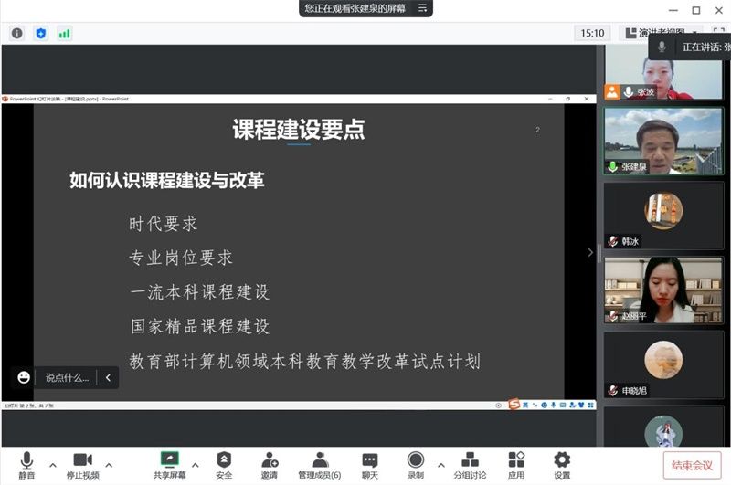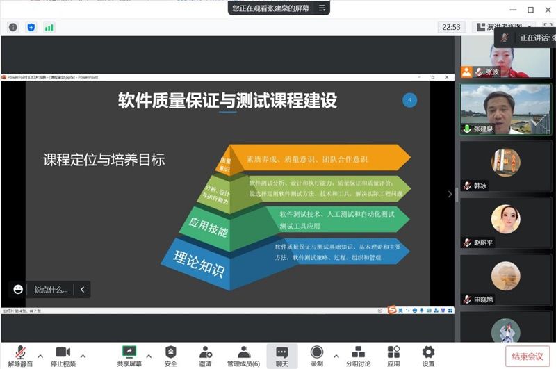 2022年10月18日,《软件质量保证与测试》课程组老师邀请了中国计算机学会数字化部主任张建泉就《软件质量保证与测试》开展课程建设需要重点关注的问题进行了指导。