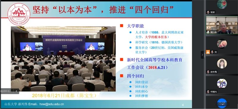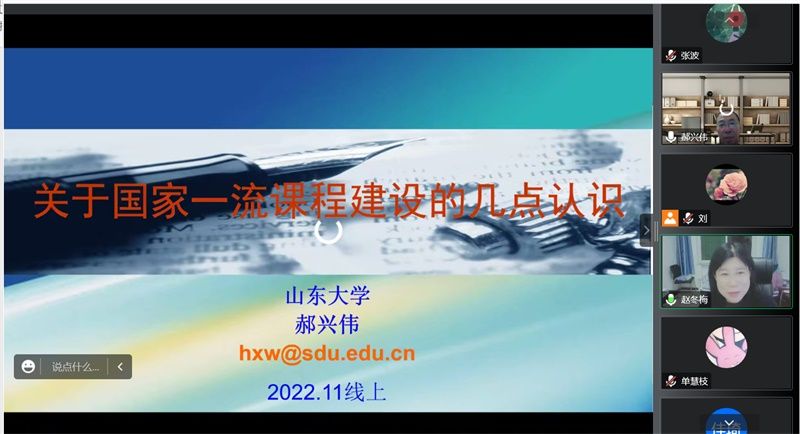 2022年11月16日下午7点30分,软件学院邀请山东大学郝兴伟教授为软件学院全体教师做《关于国家一流课程建设的几点认识》的学术报告。