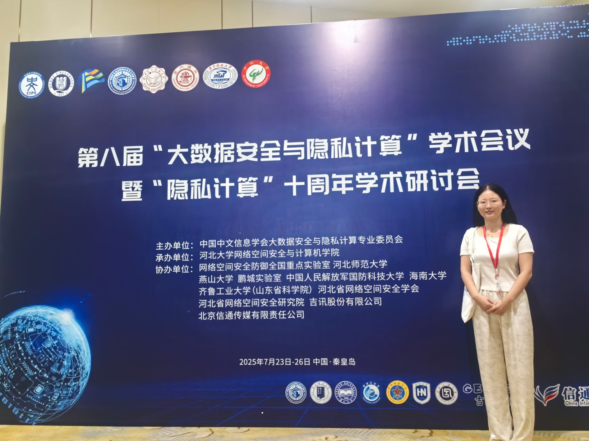 2025年7月23日至26日,第八届“大数据安全与隐私计算”学术会议在秦皇岛成功举办。beat365官网beat365英国官网网站专任教师王亚红受邀参会,与来自全国高校、科研院所的近400位专家学者围绕行业前沿议题展开深度交流,为学院学科建设与科研创新注入新动能。