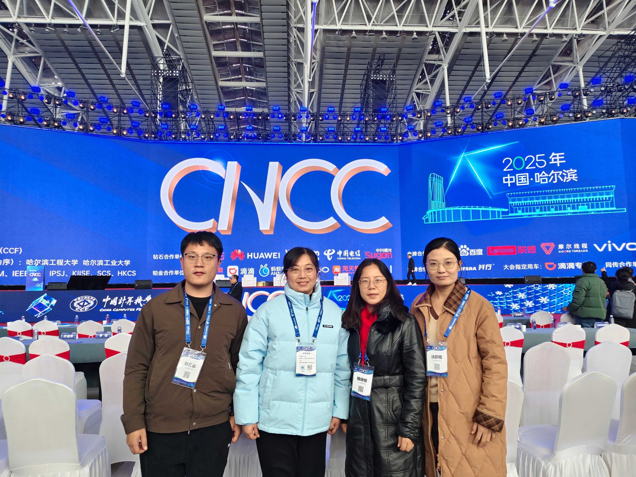 2025年10月22日至25日,第二十二届中国计算机大会(CNCC2025)在黑龙江省哈尔滨市成功举办。beat365官网专任教师冯丽佳、徐鹏格、魏晓娅、刘云宣组成团队参会,与来自全球计算机领域的顶尖学者、产业领袖等围绕行业前沿议题深入交流,为学院学科建设与科研创新汲取前沿智慧。
