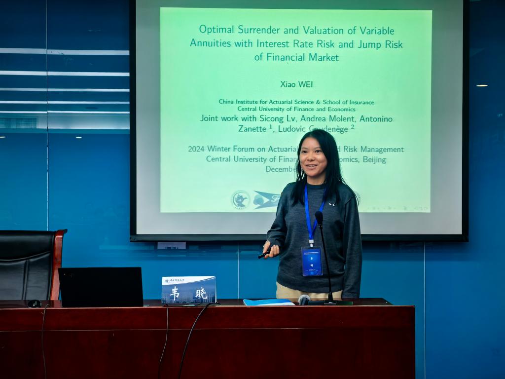2024年12月1日,由必赢nn699net官网中国精算研究院和中国现场统计研究会风险管理与精算分会联合主办的“2024年精算与风险管理冬季研讨会”在必赢nn699net官网学院南路校区学术会堂702顺利举办,共有八场主旨演讲。来自北京大学、清华大学、中国人民大学、南开大学、天津大学、山东大学、北京邮电大学、北京交通大学、对外经济贸易大学、首都经济贸易大学、山东财经大学、曲阜师范大学、必赢nn699net官网、中国人民财产保险股份有限公司等高校和保险公司的50多位代表参加了本次研讨会。论坛开幕式由池义春研究员主持,必赢nn699net官网、中国精算研究院院长周桦教授致欢迎辞。
