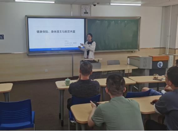 黄琪骏同学在“医疗保险、就业与收入分论坛”上作了学术报告。她从选题背景、研究意义、国内外文献综述、理论模型、计量模型构建、实证结果与分析、结论及建议等方面详细向与会师生报告了自己的论文。该论文建立了一个内生健康风险与贫困的经济增长模型,并进一步引入健康保险机制,基于理论分析和实证检验,讨论了健康保险帮助脱贫共富的逻辑和作用。理论分析结果显示,健康风险使经济萎缩,导致部分居民跌入贫困陷阱;健康保险可以消除健康风险对经济的消极影响,帮助部分甚至全部居民摆脱贫困,提高全部居民的期望终身效用。实证分析结果显示,促进身体透支决策是健康保险降低贫困脆弱性的重要渠道;通过提供健康保障延长了家庭工作时间,健康保险提高了家庭收入稳定性,降低了家庭贫困脆弱性。