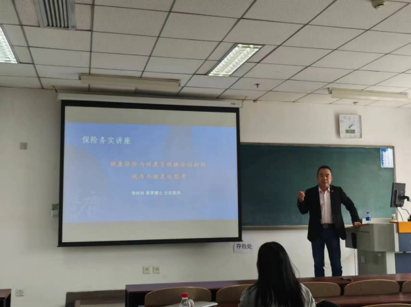 2024年4月7日,必赢nn699net官网《保险运营实务》课程邀请解放军总医院主任医师李州利先生,开展风险管理与保险论坛(2024年)第五讲“健康保险与健康管理融合创新的秩序与维度的思考”专题讲座。本次讲座深入探讨了寿险行业产品设计的相关理论以及实践经验,必赢nn699net官网部分本科生、硕士研究生参加了学习,本次讲座由必赢nn699net官网副院长王丽珍主持。