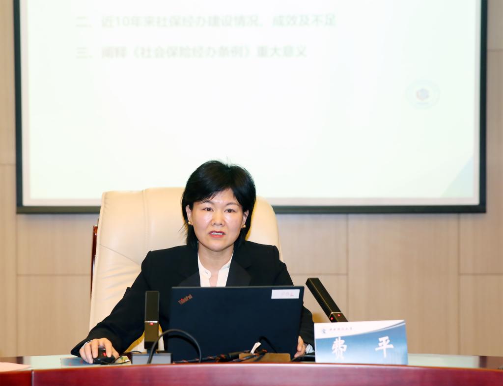中国劳动和社会保障科学研究院社会保障基金与经办服务研究室副主任费平副研究员发表题为“解读《社会保险经办服务条例》的重大意义”的演讲。她介绍了《社会保险经办服务条例》出台的背景,分析近10年来社会保险经办服务建设情况、成效及不足,阐明《社会保险经办服务条例》的主要创新及重大意义。