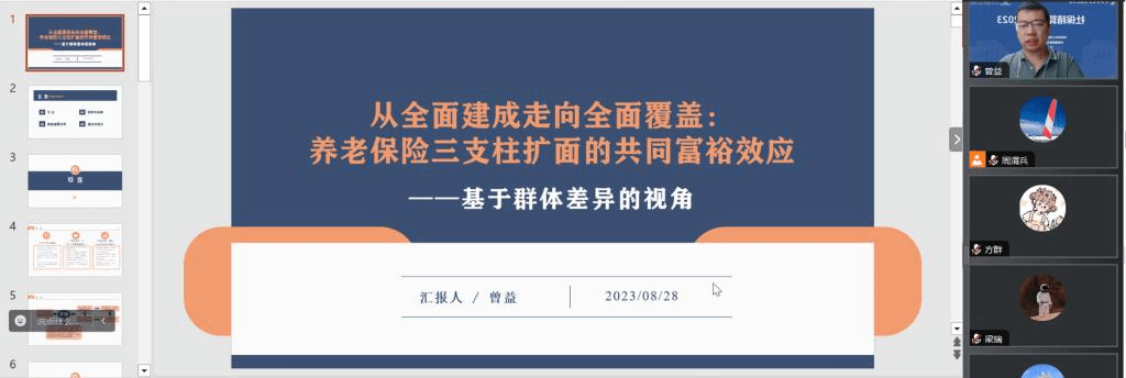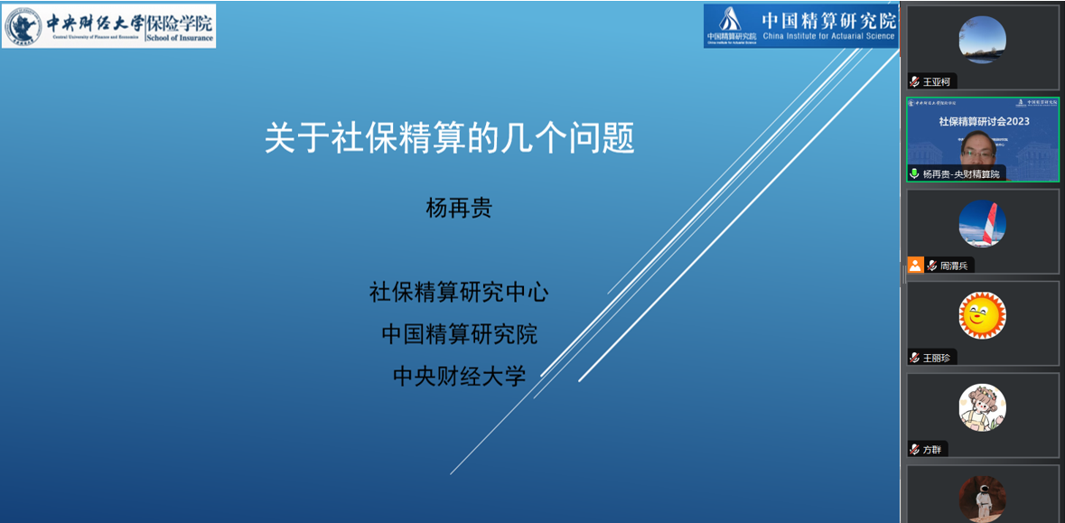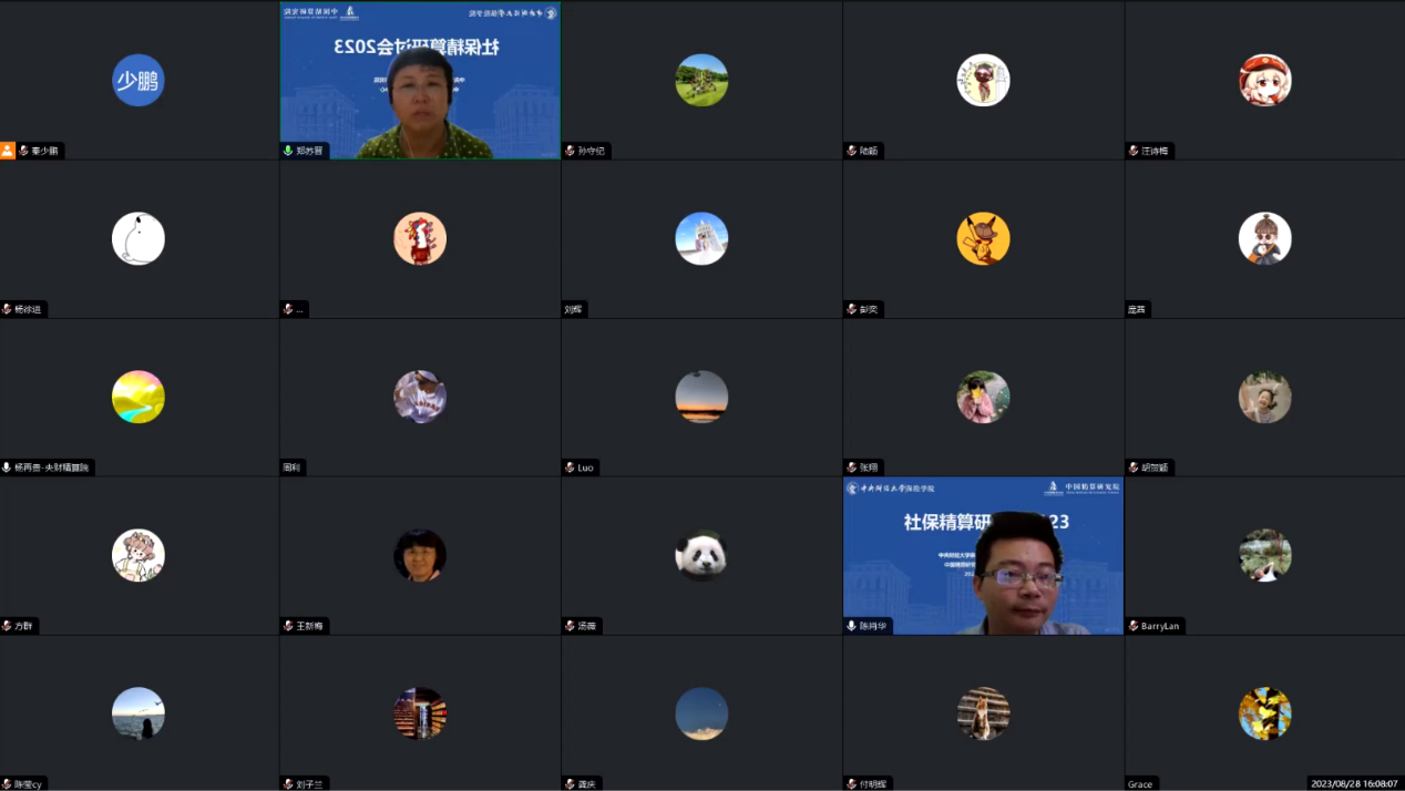 2023年8月28日,由必赢nn699net官网、中国精算研究院主办,研究院社保精算研究中心承办的“社保精算研讨会2023”在线召开。来自清华大学、中国人民大学、中国社会科学院、华北电力大学、对外经贸大学、中南财经政法大学、必赢nn699net官网和浙江大学等高校和科研机构的100多名专家、学者和研究生参加了会议,就社保精算领域的问题进行了研讨。会议分为“领导致辞与主题演讲”“平行分会”和“大会宣讲与总结”等主要环节。