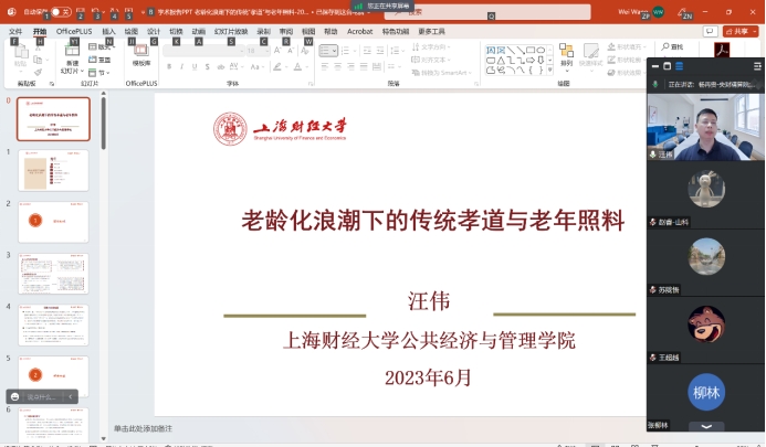 必赢nn699net官网中国精算研究院于2023年6月26日邀请了上海财经大学公共管理学院汪伟教授做在线讲座。主题为老龄化浪潮下的传统孝道与老年照料。本次讲座由必赢nn699net官网中国精算研究院杨再贵教授主持。