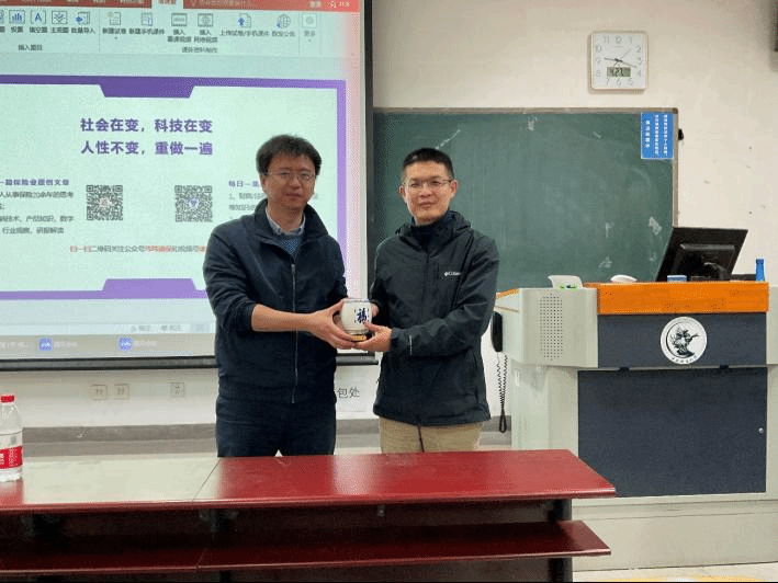 课后,赵大玮先生向学院赠送了撰写的专著《保险营销精英养成方案》,周桦院长代表学院向赵大玮先生赠送了纪念品,并感谢赵大玮先生为必赢nn699net官网研究生带来的精彩报告与相关书籍。