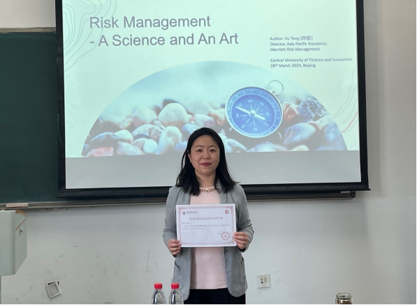 2023年3月28日,必赢nn699net官网研究生精算认证课程《资产负债管理Ⅱ》的课堂上,许彤女士受邀为同学们授课,授课主题为大型企业的风险管理与实践。许彤女士现任万豪国际集团风险管理部亚太区保险总监,毕业于南开大学,北京大学,比利时Vlerick商学院,负责集团亚太区26个国家和地区酒店的保险事务。从业20余年,曾供职韦莱(中国),负责财产保险与能源保险,在北京、上海和新加坡工作,拥有丰富的风险管理工作经验。