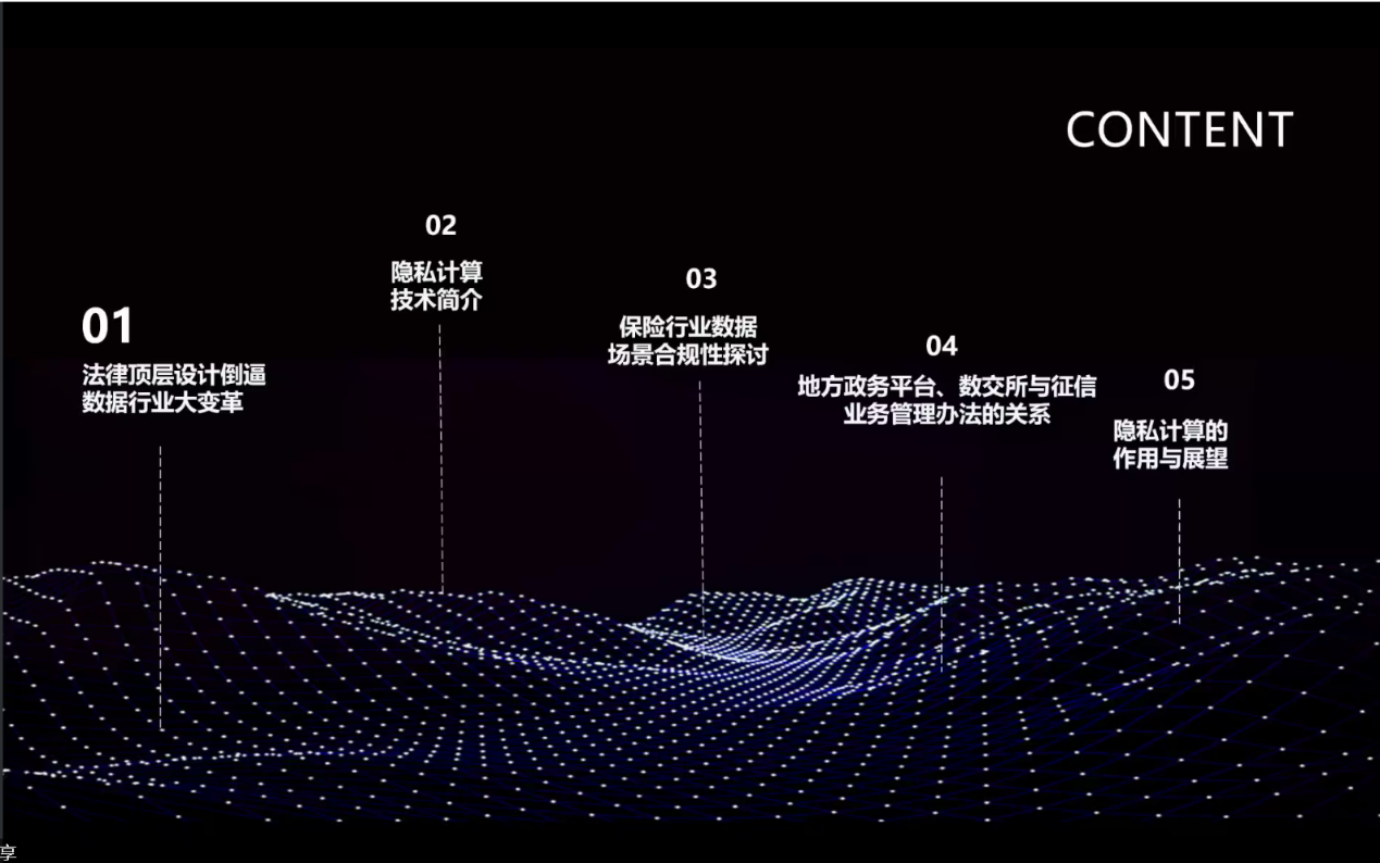 本课程涉及到专业的隐私计算技术,高翔先生首先梳理了这一技术的诞生背景,并阐释了法律顶层设计倒逼数据行业大变革的原因,该原因致使隐私计算顶层设计启动,且随着法律的不断完善,隐私计算成为了数据服务的基础设施与建设“标配”。接着,高翔总对隐私计算技术展开了详细介绍。隐私计算的技术方案有差分隐私、同态加密、多方安全计算等多种,可以将其归纳为MPC、FL、TEE三条路径,各自具备不同的特点和应用领域。高翔总指出底层逻辑是各种加密协议的灵活应用,并深入讲解了多方计算、联邦学习、机密计算等技术的使用场景和局限约束。在此基础上,高翔总对行业趋势进行了判断,认为未来技术融合是大的趋势,互联互通在短期内实现尚不现实,多方集成孕育着巨大商业机会,云端集成和硬件集成等可能成为隐私计算商用化的重大推手。此后,高翔总对保险行业数据场景的合规性展开探讨,评价了如今各类做法的安全程度,并介绍了单向查询场景的主要合规点及标准流程。