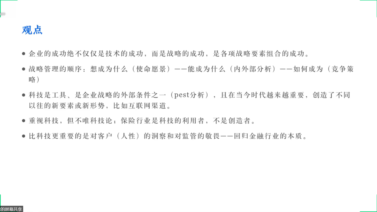 课程最后,马潇先生阐明保险中介的三个发展阶段,从传统模式逐步完善到融合模式,指出以新人群、新连接、新产品、新运营构成的保险“新消费”正在形成;同时保险科技的运用深入而广泛,也是未来各大保司争相抢占的关键之地,是互联网保险的下一个竞争前沿。