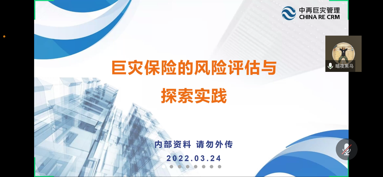 3月24日,《保险科技》第四次课程由中再巨灾风险管理股份有限公司模型科学部总监马腾飞博士主讲。马腾飞博士曾任中国财产再保险有限责任公司创新业务部承保主管等职务,深耕巨灾风险管理与巨灾模型研究领域,长期从事巨灾风险量化模型开发、行业风险暴露数据库建设、巨灾保险试点项目运营等工作,多次荣获中再集团重大项目奖励。