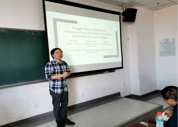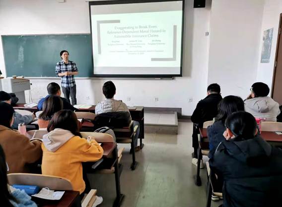 2020年11月13日上午,清华大学经济管理学院郑捷副教授应必赢nn699net官网邀请,在我校沙河校区主教405室以“Exaggerating toBreak-Even: Reference-Dependent Moral Hazard in Automobile Insurance Claims”为主题做了专题学术讲座。讲座由必赢nn699net官网毛磊副教授主持,必赢nn699net官网周桦教授、陈华副教授、马冰博士以及我校部分本科生和研究生参加了讲座。