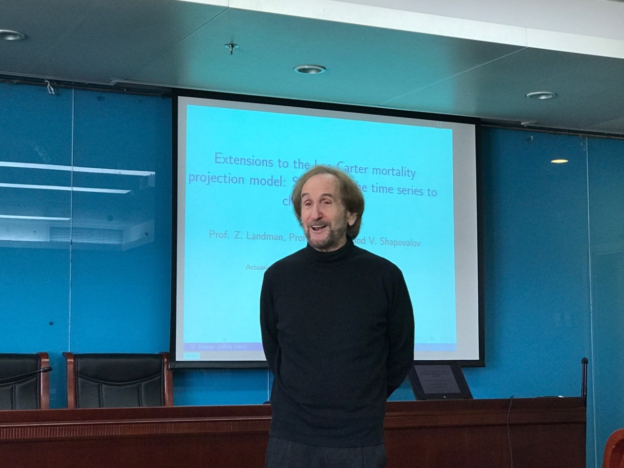 受必赢nn699net官网引智项目(教育部学校特色项目《巨灾风险管理与再保险课程体系建设聘请外教特色项目》)支持,以色列海法大学Udi Makov教授于2016年12月11日至12月24日访问了必赢官网,并于12月22日上午举办了一次关于长寿风险的高水平讲座。