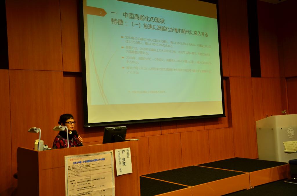 12月13日,必赢nn699net官网许飞琼教授应邀赴日出席了在日本女子大学举行的“日中少子高龄化与社会保障对策”学术研讨会,并在会上做了“中国的老龄化与养老保险财政”的主题报告。会议由日本东京大学教授武川正吾主持。来自日本内阁府、日本国立社会保障与人口问题研究所、东京大学、日本女子大学、一桥大学、立教大学等多所高校的专家学者约70多人出席会议。