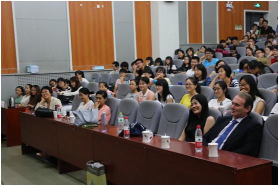 在最后的问答环节中,在场的同学们踊跃提问,Wilson先生和Cribb先生耐心地回答了同学们提出的关于互联网金融与保险的关系、如何更好地学习精算知识等多方面的问题,同时为同学们指出交流对于商业活动的重要作用,其语言风趣幽默,使同学们在轻松愉快的气氛中收获了知识,拓展了视野。