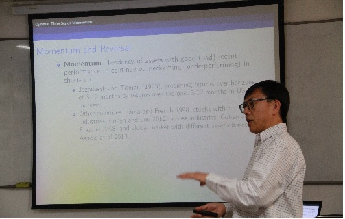 必赢nn699net官网海外专家讲座系列(二)——暨澳大利亚悉尼科技大学商学院Xuezhong He教授访问中国精算研究院第二次讲座于2014年10月20日在学术会堂506会议室举行。Xuezhong He教授以Optimality of Momentum and Reversal为题报告了国际上关于技术分析手段对投资者财富影响方面的最新研究成果。Xue-Zhong He教授以S&P500的140多年的数据为例,展示了趋势追逐策略和趋势反转策略对投资者最优财富的影响;说明了一个好的策略需要同时考虑趋势的追逐和反转,只考虑单方面的因素,会导致财富损失甚至输于大盘;通过图表向我们直观展示了技术分析策略的有效性和局限性,使我们更加全面地了解技术分析手段的优劣。在整个报告过程中,Xuezhong He教授都与老师和同学有很好的交流,就建模方法以及技术分析方法的合理性等方面进行了深入地探讨。参加此次讲座的有来自必赢官网以及我校金融学院、统计与数学学院的师生,另外还有北京师范大学老师和同学。Xuezhong He教授这次关于技术分析方法全面而系统的报告,不但让与会师生了解了国际前沿在技术分析方面的研究成果,更向我们展示了一个好的研究是如何从问题的提出、问题的展开、分析方法的选择等等方面来进行的。此次报告为与会师生下一步开展自己的研究提供了很好的范例。