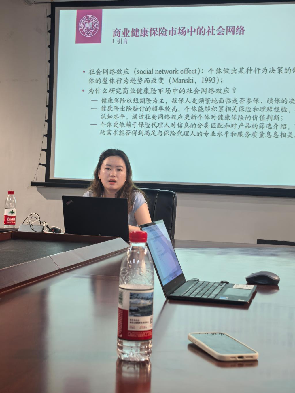 杜老师首先以“亲缘/血缘网络:家庭参保的‘隐形推手’”为题,分析了扩展家庭网络在参保决策中的正向效应。然后,她以“地缘网络:村居续保中的逆向选择放大”为题,针对巴基斯坦小额健康保险项目,发现地缘社会网络对续保决策和逆向选择具有双重作用。最后,杜老师以“业缘网络:代理人层级结构的政策响应”为题,探讨了保险代理人网络在监管改革后的动态变化。