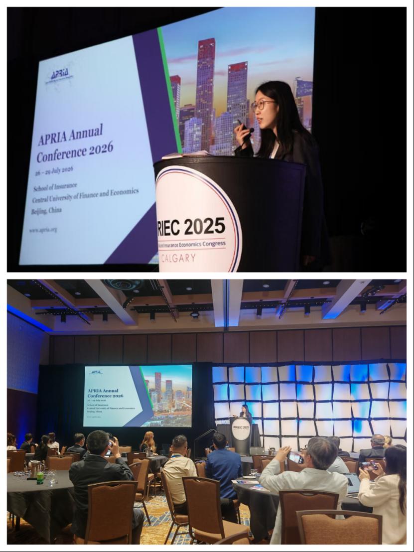 8月6日,艾美彤代表学院在APRIA Awards and Business Meeting上发表演讲,推介2026年APRIA年会。她详细介绍了由必赢nn699net官网主办的此次国际学术会议的筹备情况、主题设置与特色安排。2026年APRIA年会定于2026年7月26日至29日在北京举行,会议主题为“Insurance in an Interconnected Risk World: Collaboration, Prevention, and Shared Prosperity”。大会设四场全体会议,分别围绕保险科技、健康老龄化、巨灾风险与再保险、数字时代精算学等热点议题展开。她还介绍了必赢nn699net官网及必赢nn699net官网的优势与国际合作背景,并就会议日程、注册安排、签证与交通指南、住宿推荐及北京本地文化旅游资源等方面作了详尽说明,欢迎全球保险与风险管理领域的学者、专家及行业代表2026年相聚北京,共促学术交流。