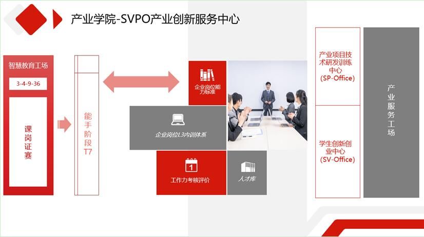 产业创新服务中心是为产业学院学生提供创新创业项目孵化的办公空间,下设管理与质量保障部、商务拓展部、基础服务部,以两种运营服务模式存在,其一,大学通过自主立项的项目商业计划书通过审核后入驻,配备专业导师指导赋能项目团队完成项目孵化;其二,信息安全运营服务中心通过项目团队招募方式入驻,由产业项目经理负责管理及技术指导完成产业项目,对外接驳产业侧项目人力资源需求,对内搭建大学生创新创业平台,最大化拉升有潜质学生的能力提升,创新形成更具特色的教育教学成果。