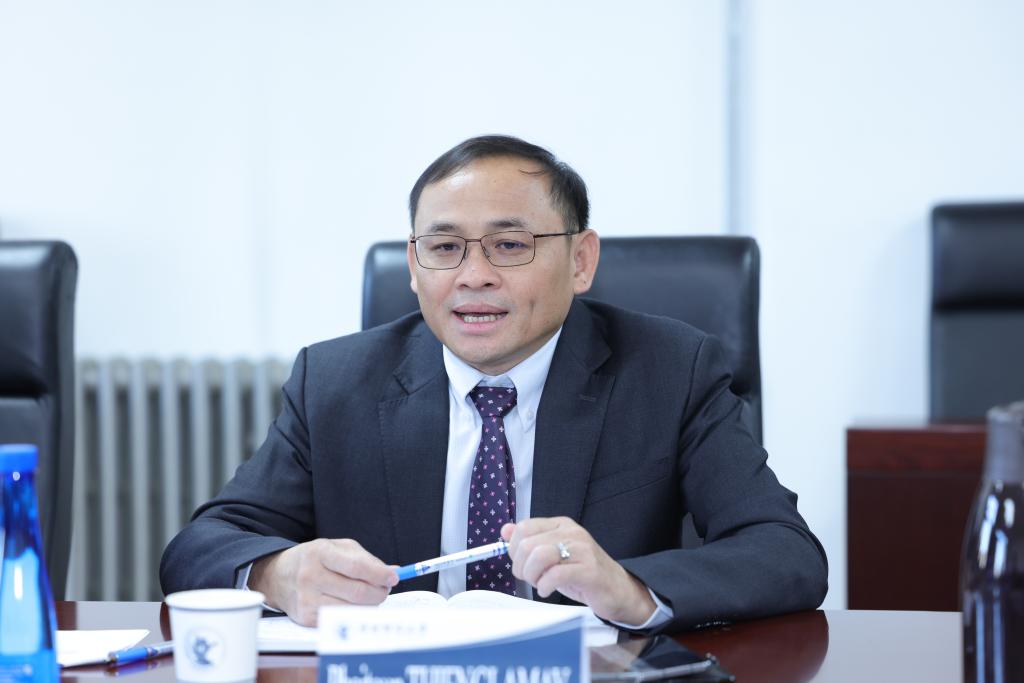 会见中,马海涛代表学校对老挝保险监管部门的领导、专家来我校访问表示欢迎。他表示,去年10月,中共中央总书记、国家主席习近平和老挝人民革命党中央总书记、国家主席通伦共同签署了《中国共产党和老挝人民革命党关于构建中老命运共同体行动计划(2024-2028年)》;几天前两国发表了《中华人民共和国和老挝人民民主共和国联合声明》,在新形势下深化中老命运共同体建设、致力于人民幸福与国家富强、致力于人类和平与进步事业等方面达成了广泛共识。在这样的背景下,老挝国企和保险监管司各位领导应邀来我校访问,就自保公司高质量发展问题深入开展交流,探讨共同推动亚洲保险事业健康发展,具有重要意义。
